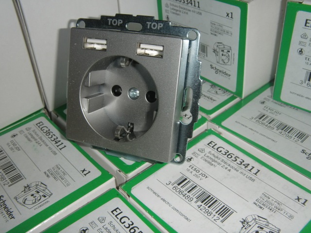 ELG 3653411 Elso JOY UP-Einsatz Schuko-Steckdose mit USB-Ladesteckdose 2-fach, mit Zentralplatte